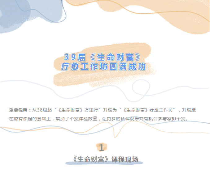 三十九届《生命财富》 疗愈工作坊和306届《生命就是关系》